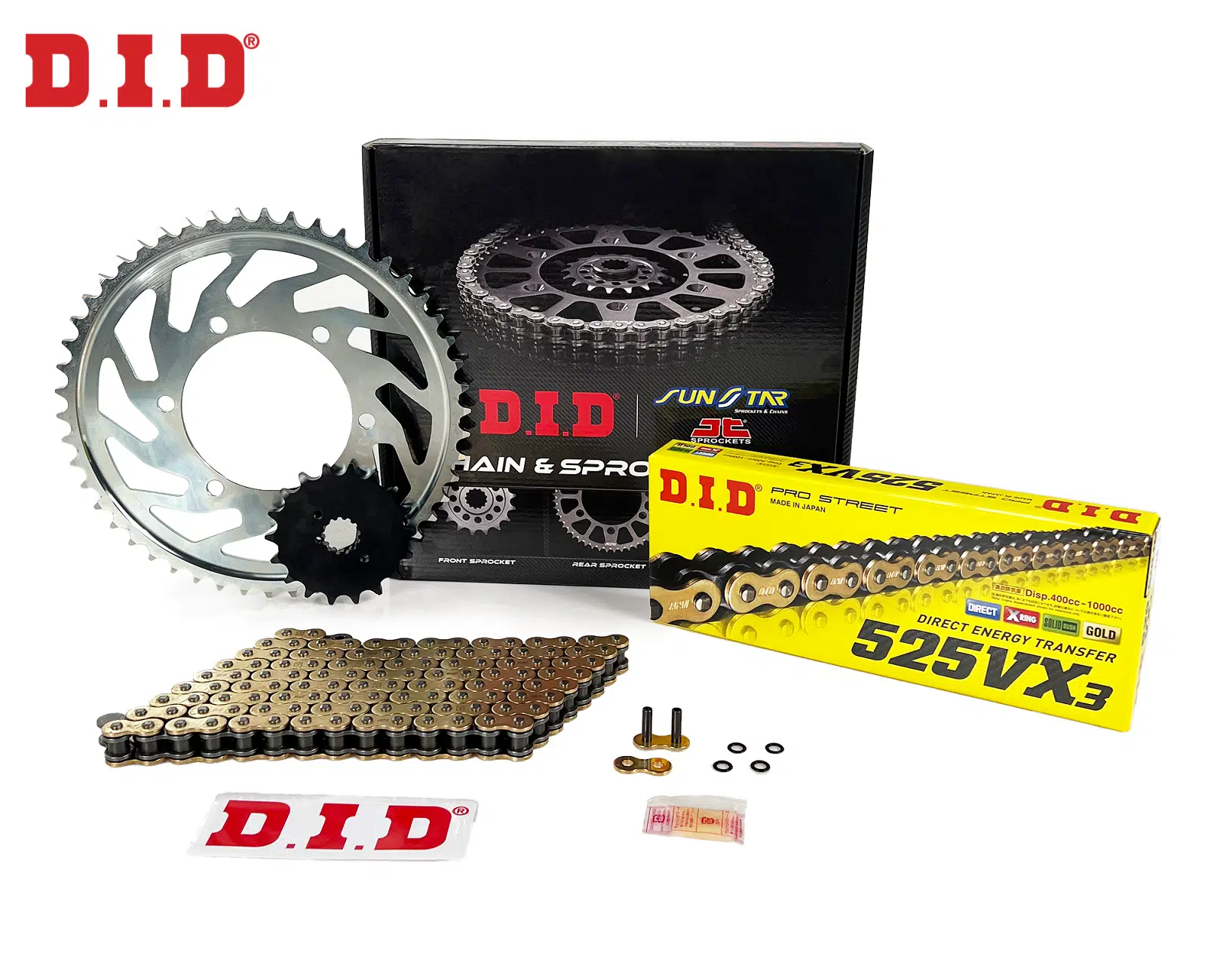ZİNCİR DİŞLİ SETİ YAMAHA MT-07 (700 cc) (2014-2024) / YAMAHA / MT-07 / 700cc / ZİNCİR: DID-525VX3 (Gold)-108 / ÖN-ARKA DİŞLİ: SUNSTAR (16T-43T) / 2014-2015-2016-2017-2018-2019-2020-2021-2022-2023-2024